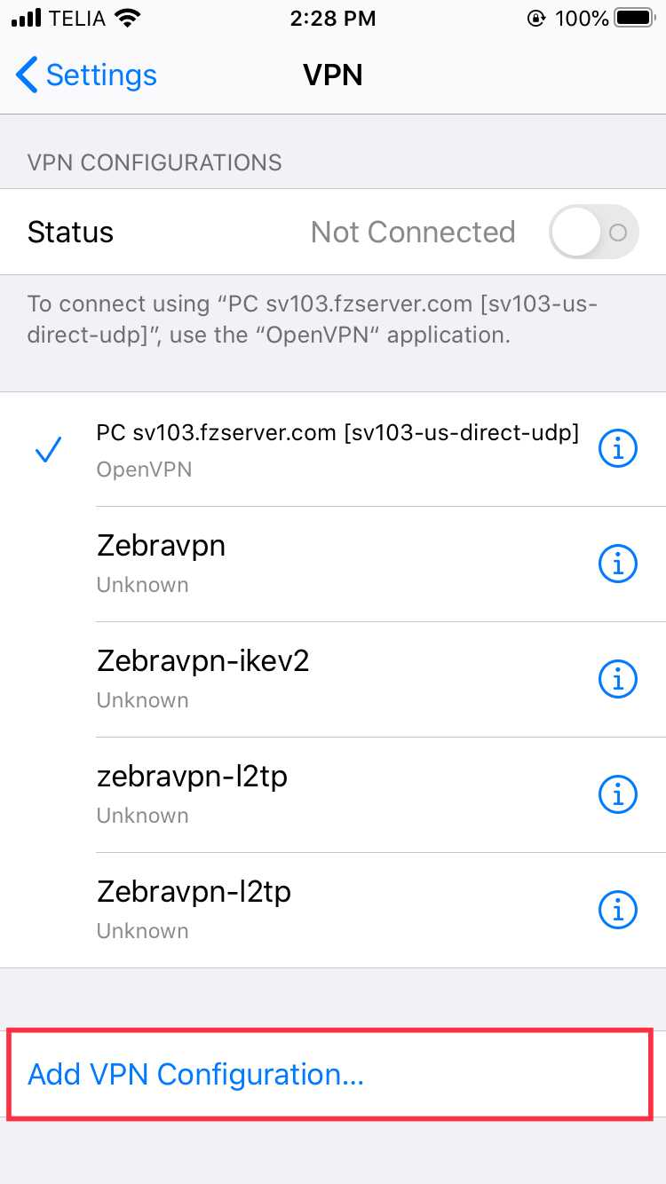 Go to Settings > General > VPN > Add VPN Configuration.