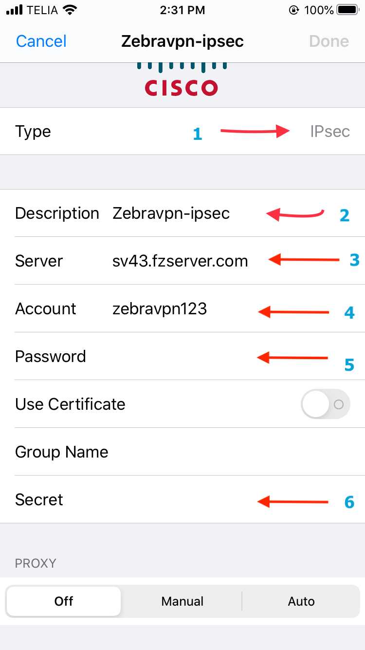 Select IPSec, then enter the following information: