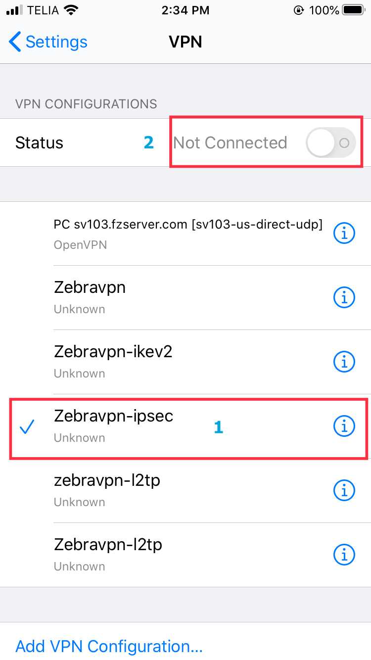 To connect, go to Settings > General > VPN and toggle the VPN connection on.
