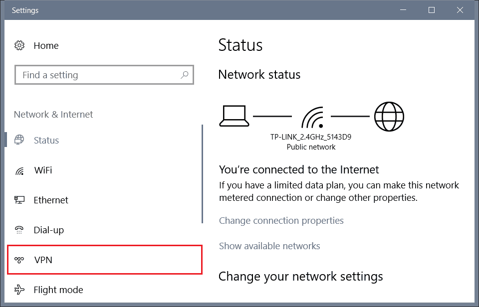 در این قسمت در منوی سمت چپ بر روی گزینه VPN کلیک کنید